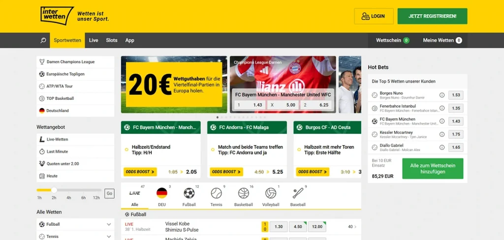 - Sehr hohe Wettquoten, besonders bei der Fußball Bundesliga.